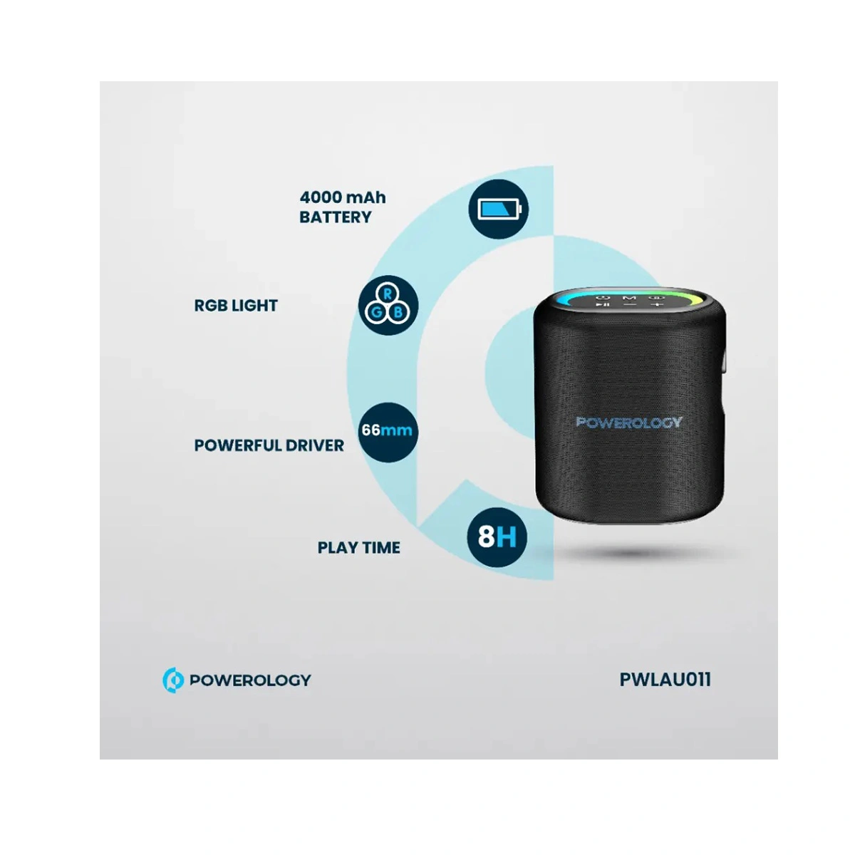اسپیکر قابل حمل پاورولوژی، ترکیبی از صدای قدرتمند، طراحی شیک و نورپردازی جذاب برای تجربهای متفاوت از موسیقی.