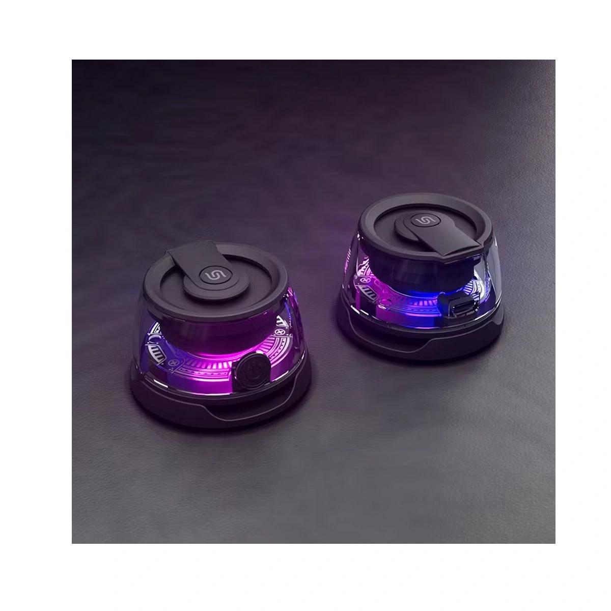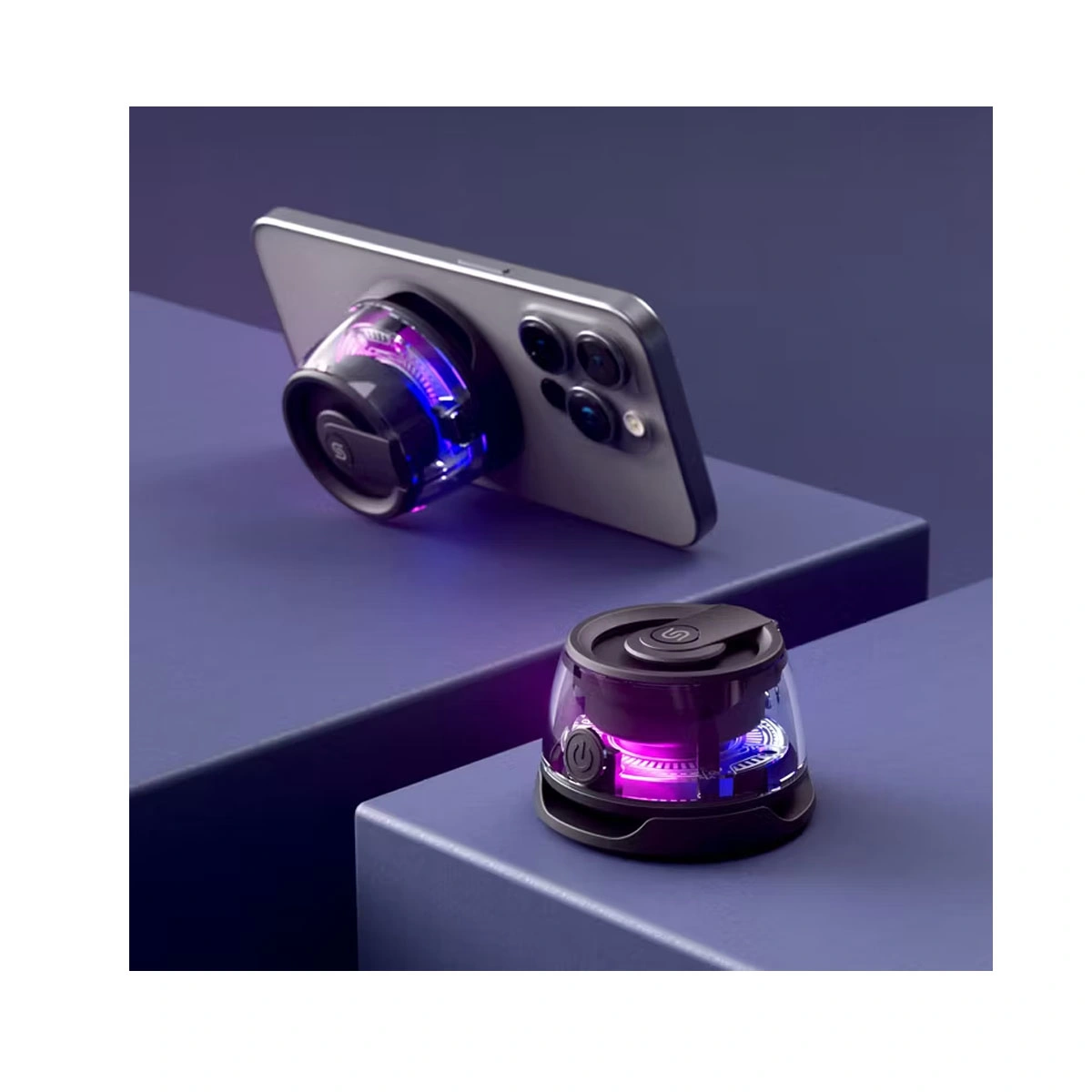 نورپردازی RGB روی بدنه اسپیکر، جلوه بصری جذابی ایجاد میکند و آن را برای استفاده در مهمانیهای کوچک، گیمینگ یا قرار دادن روی میز کار، چشمنوازتر میسازد. طراحی بسیار جمعوجور (حدود ۵۷×۳۶ میلیمتر) و وزن پایین، حمل آن در جیب، کیف یا حتی نصب دائم روی میز یا مانیتور را ساده کرده و باعث میشود همیشه بدون دردسر یک اسپیکر آماده بهکار در دسترس داشته باشید.