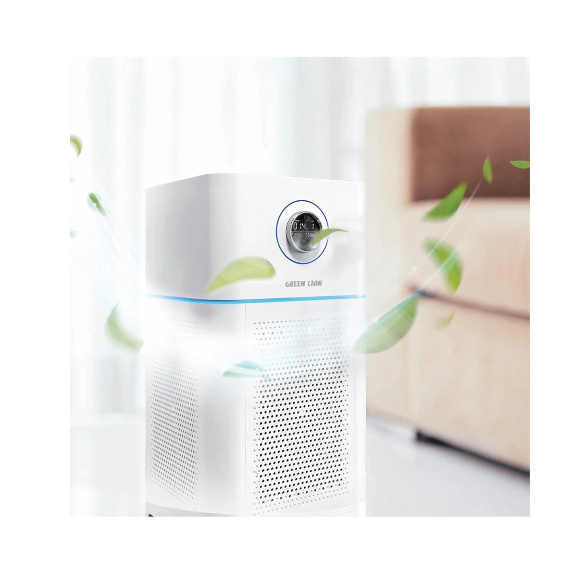 دستگاه به سنسور PM2.5 مجهز است که میزان ذرات ریز معلق در هوا را بهصورت لحظهای اندازهگیری میکند و روی نمایشگر LED/OLED جلوی دستگاه نشان میدهد. این نمایشگر علاوه بر کیفیت هوا، وضعیت حالت کار، سرعت فن، رطوبت و تایمر را هم بهصورت واضح نشان میدهد و از طریق پنل لمسی میتوانید تنظیمات را تغییر دهید.