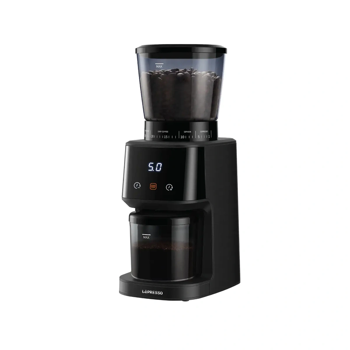 LePresso Conical Burr Grinder برای کسانی طراحی شده است که میخواهند با یک آسیاب، تمام روشهای دمآوری قهوه را پوشش دهند و در عین حال کیفیت آسیاب یکنواخت و قابلاعتمادی داشته باشند. Burr مخروطی ۴۰ میلیمتری این دستگاه، دانههای قهوه را با یکنواختی بالا خرد میکند و موتور ۱۶۵ وات، قدرت کافی برای آسیاب مداوم و پایدار را فراهم میکند تا عصارهگیری در اسپرسو و روشهای دمی، متعادل و غنی باشد.