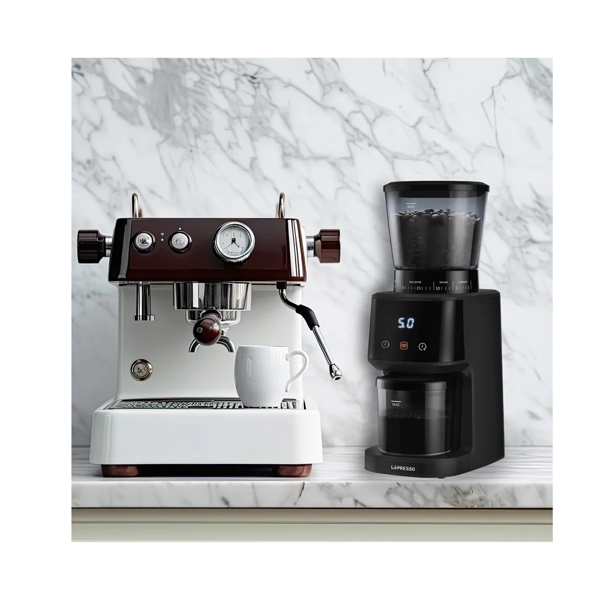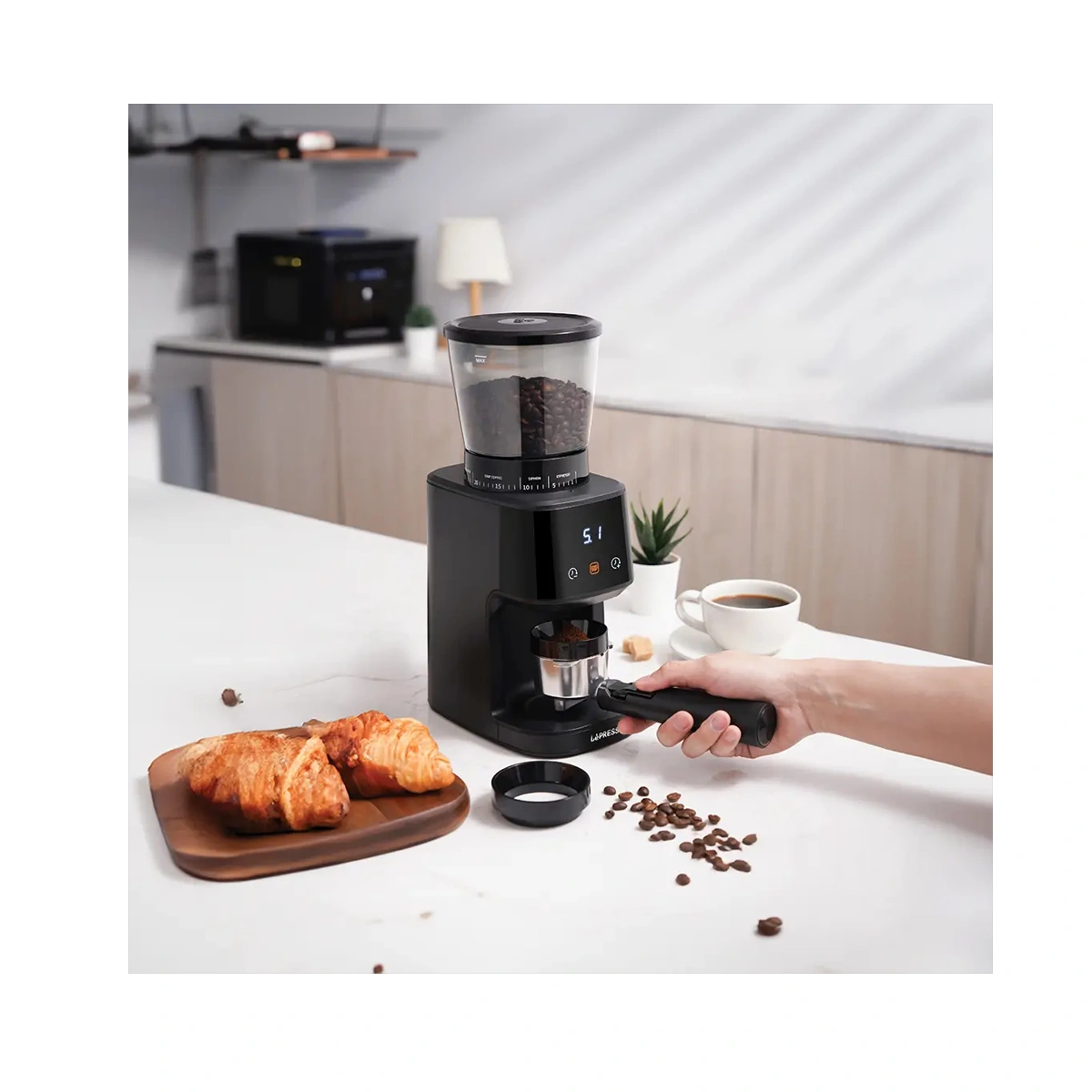 اگر برای فروشگاه MTM در کنار ست باریستای لپرسو (پرتافیلتر نیکد، تمپر ۵۸٫۵، دیستریبیوتر و تَمپینگ استیشن) به دنبال یک آسیاب برقی مطمئن و خوشکیفیت هستی، LePresso Conical Burr Grinder با ظرفیت بالا، تنظیمات زیاد و آسیاب یکنواخت، گزینهای بسیار منطقی برای استفاده خانگی و کافیبارهای کوچک است.