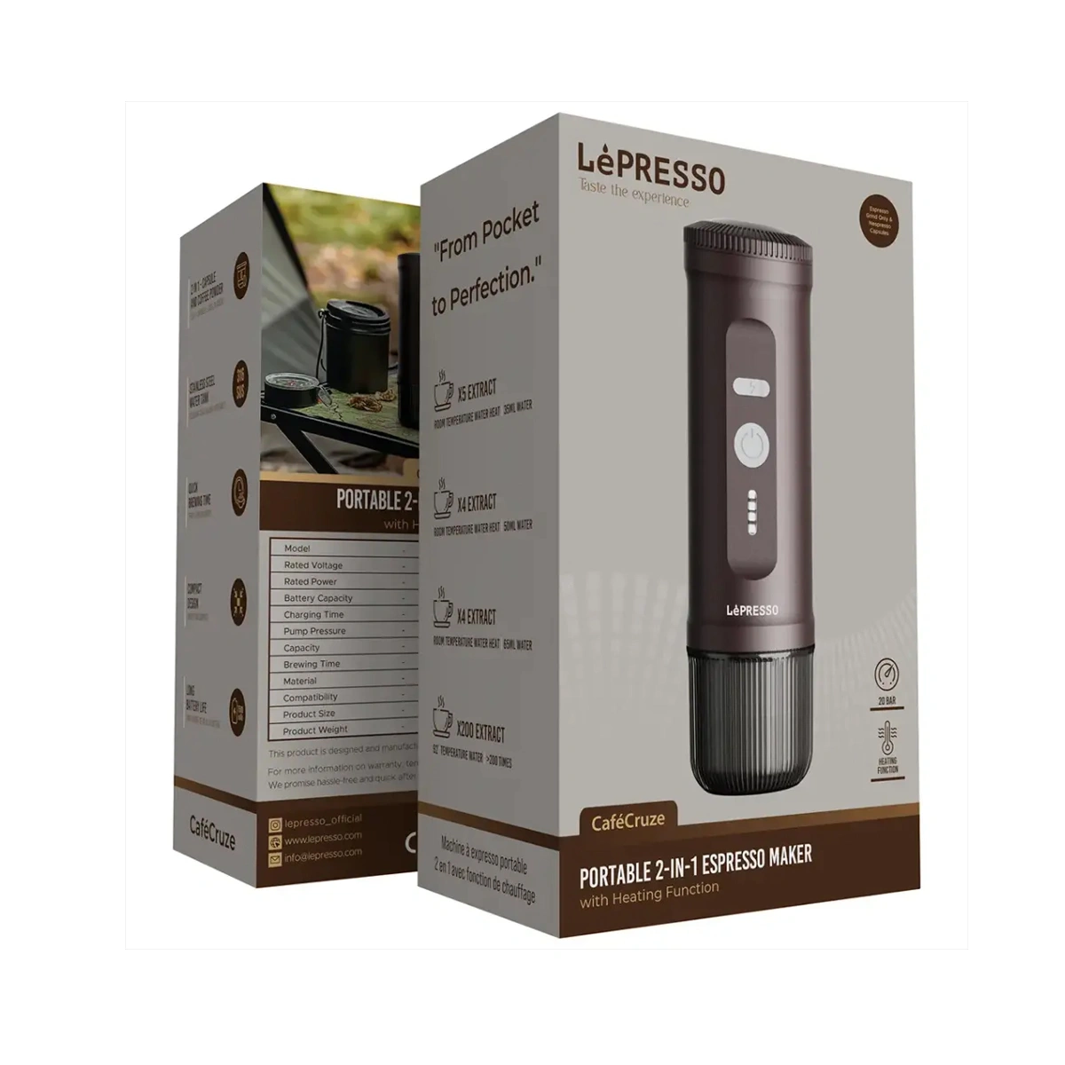 LePresso Portable 2‑in‑1 Espresso Maker برای قهوهدوستهایی طراحی شده که نمیخواهند بیرون از خانه از کیفیت قهوه خودشان بزنند. این دستگاه پرتابل با پمپ ۱۵ بار، مخزن آب استیل ۸۰ میلیلیتری و طراحی فشرده، اسپرسویی غلیظ و خوشطعم را در سفر، محل کار، خودرو یا طبیعت برای شما فراهم میکند.