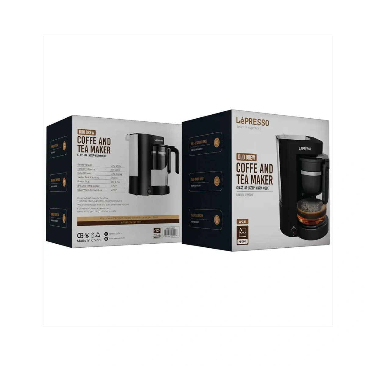LePresso Duo Brew Coffee and Tea Maker برای کسانی طراحی شده است که میخواهند هم چای و هم قهوه را با یک دستگاه، ساده و استاندارد دم کنند. مخزن ۷۵۰ میلیلیتری این دستگاه، حجم مناسبی برای چند فنجان نوشیدنی در هر نوبت فراهم میکند و برای خانوادهها یا محیطهای اداری کوچک کاملاً کافی است. دمآوری در دمای ≥۷۵ درجه سانتیگراد باعث میشود عصارهگیری چای و قهوه کاملتر و طعم نهایی غنیتر باشد.