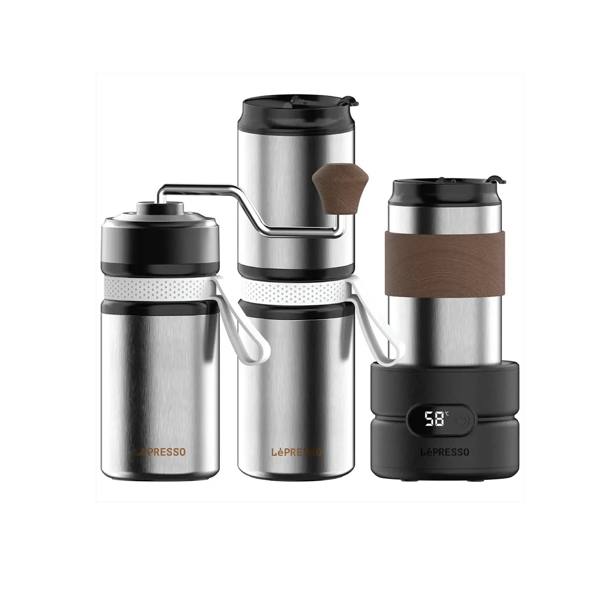 اگر در نمایشگاه MTM یک گوشه Outdoor / Travel Coffee دارید، LePresso Grindo Quattro 4‑in‑1 Outdoor Coffee Set می‌تواند یکی از محصولات شاخص آن بخش باشد؛ هم از نظر طراحی متفاوت و هم از نظر کامل بودن پک (آسیاب + دم‌آور + جوش‌آور + فنجان).