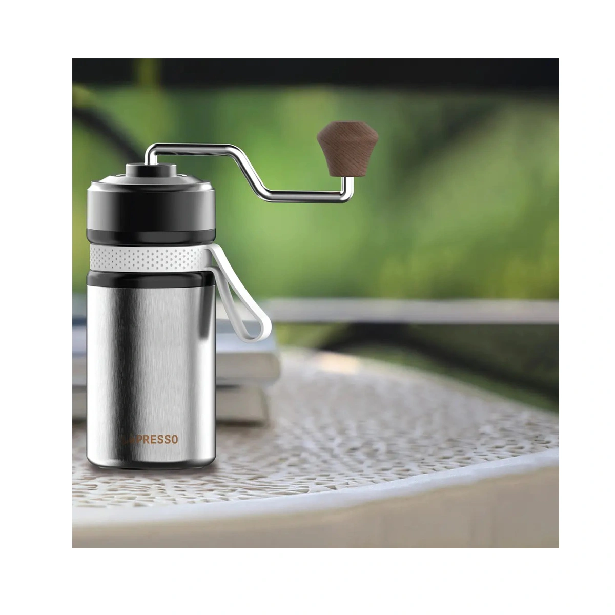 آسیاب دستی داخلی به شما اجازه می‌دهد دانه قهوه تازه را درست قبل از دم‌آوری آسیاب کنید؛ این کار طعم و عطر قهوه را چند برابر بهتر از استفاده از پودر آماده می‌کند. با ظرفیت حدود ۲۰ گرم دانه، می‌توانید یک سرو قهوه دمی برای یک نفر (یا دو شات سبک) آماده کنید که برای سفر و مسیر کاملاً ایده‌آل است.