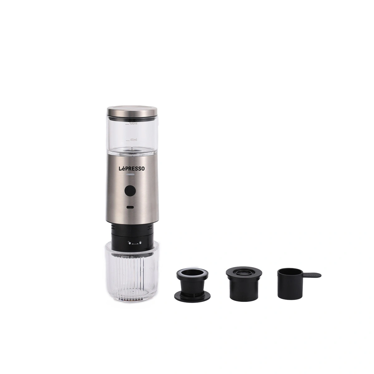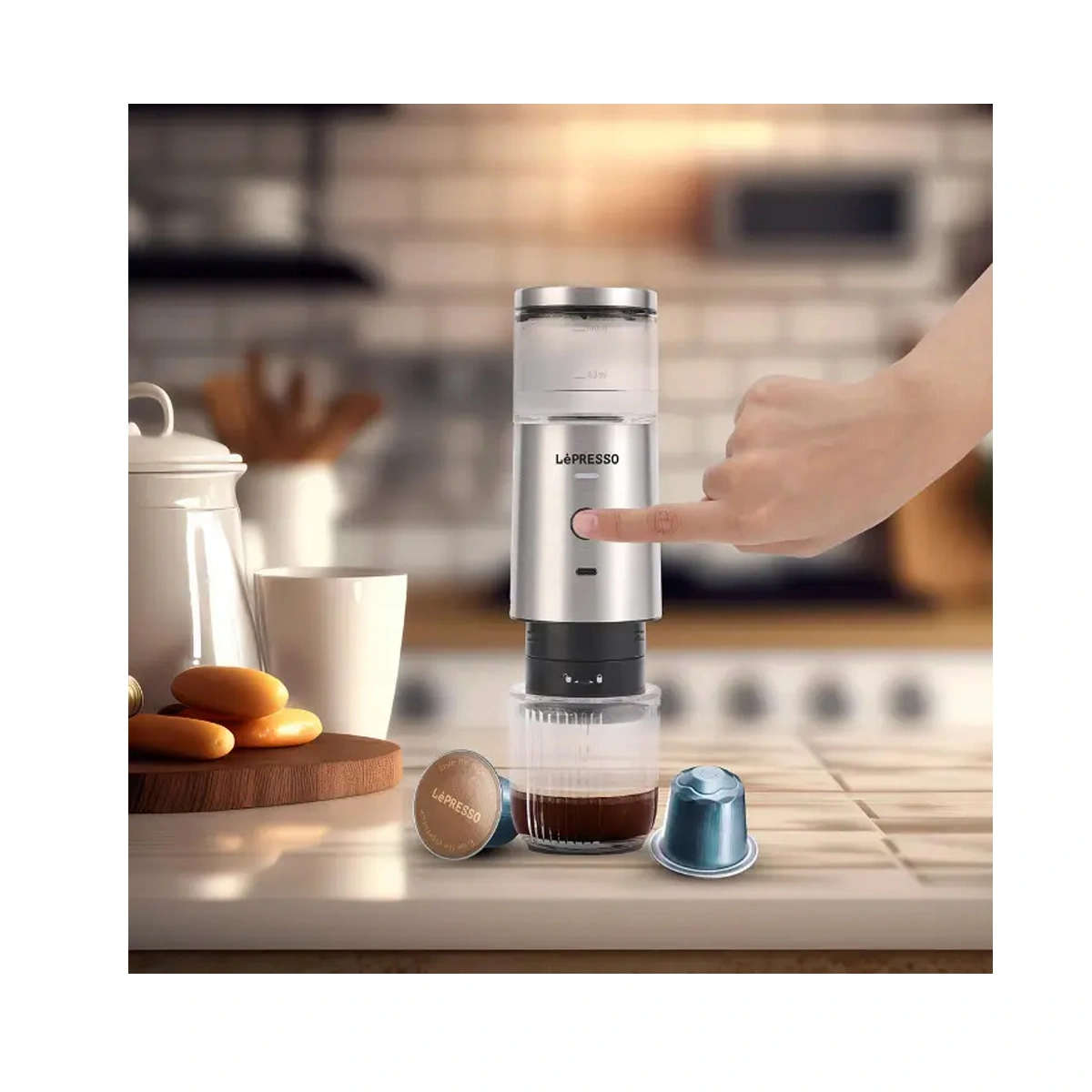 LePresso Portable Espresso Powder / Nespresso Pods یک اسپرسوساز پرتابل استیل است که برای دوستداران قهوه در حرکت طراحی شده است. مخزن آب ۱۰۰ میلیلیتری آن حجم مناسبی برای یک شات اسپرسو بزرگ یا دو شات کوچکتر در حالت تقسیمشده فراهم میکند و فشار ۹ بار، عصارهگیری کافی برای تهیه یک اسپرسوی غلیظ و خوشطعم را تضمین میکند.