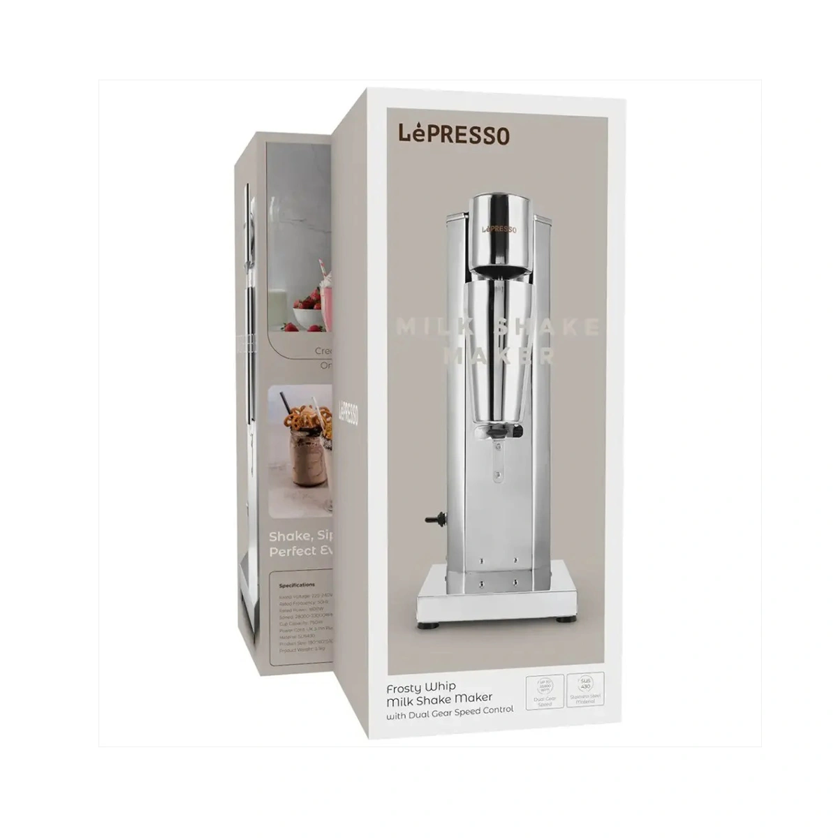 LePresso Frosty Whip Milk Shake Maker برای کسانی طراحی شده است که میخواهند در خانه یا کافیبار کوچک خود، شیک و فِرَپهای با کیفیت نزدیک به کافه داشته باشند. این شیکساز رومیزی با موتور ۲۸۰ واتی و سرعت ۷۰۰۰ تا ۱۵۰۰۰ دور در دقیقه، قدرت کافی برای میکس سریع شیر، بستنی، یخ و افزودنیها را دارد و با هر دو سطح سرعت پایین و بالا، بافتهای مختلفی از شیک نرم تا فِرَپه غلیظ را پوشش میدهد.