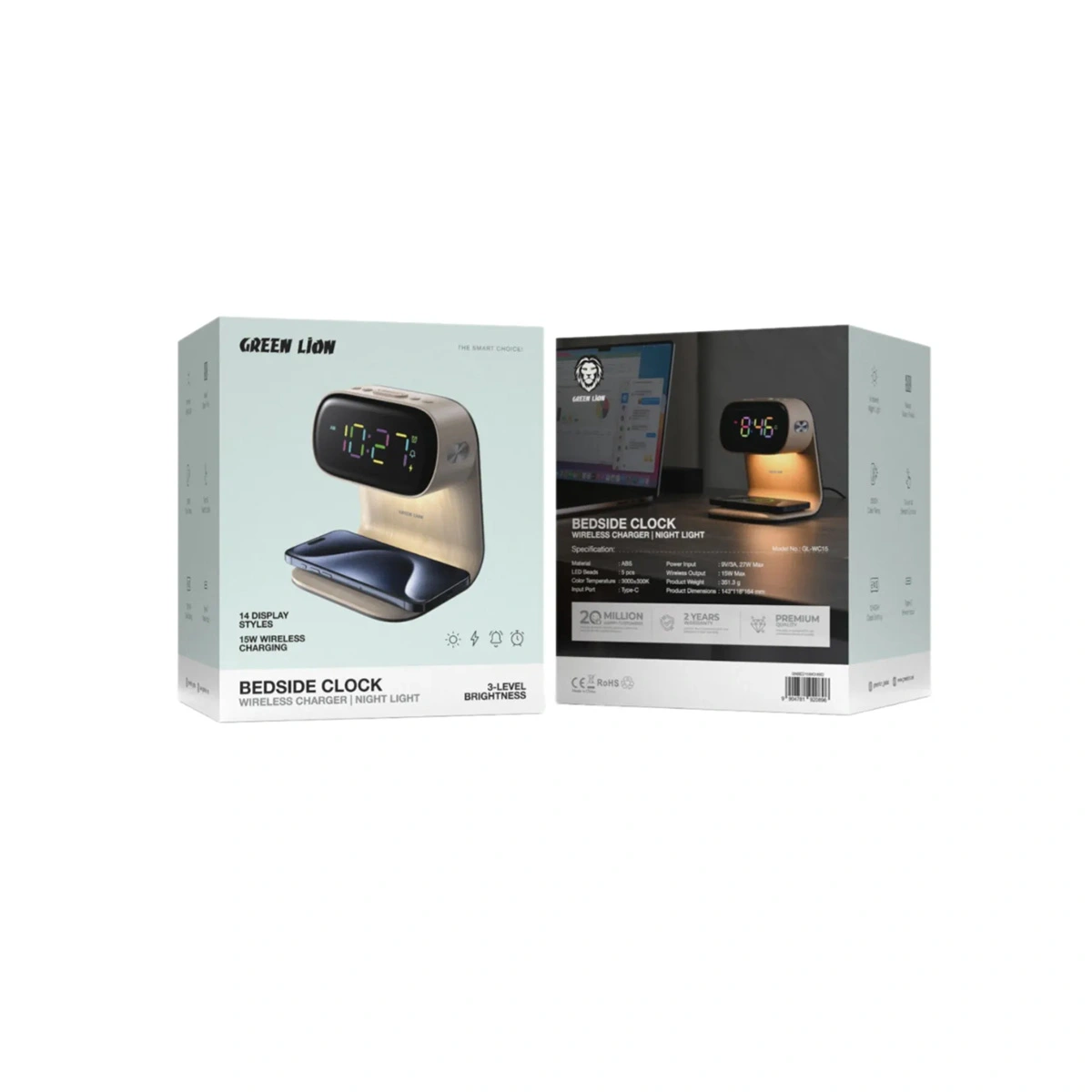 ساعت رومیزی گرین لاین Green Lion Bedside Clock with Wireless Charger – Wood یک همراه ایدهآل برای میز کنار تخت شما است که همزمان نقش ساعت، چراغ خواب و شارژر بیسیم را ایفا میکند. طراحی بدنه با طرح چوب، این محصول را با انواع دکوراسیون مدرن و کلاسیک سازگار میسازد و حس گرم و طبیعی به فضای اتاق میدهد.