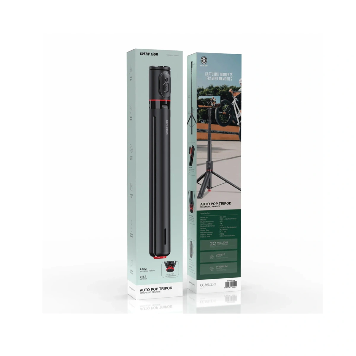 سهپایه هوشمند Green Lion Auto Pop Tripod با ریموت مغناطیسی نسل جدید، نیاز عکاسی و فیلمبرداری شما را در هر شرایطی برآورده میکند. قابلیت تنظیم ارتفاع تا ۱.۷۷ متر، چرخش سری ۳۶۰ درجه و ریموت بلوتوث ۵.۲، ایجاد تصاویر گروهی و سلفی را ساده و حرفهای کرده؛ همچنین با طراحی مستحکم و بدنه سبک، قابل حمل بودن آن را برای سفر و فعالیتهای روزمره فراهم میکند. سازگار با اکثر گوشیهای هوشمند با عرض ۶۰ تا ۹۵ میلیمتر، باتری ریموت قابل تعویض و دوام عالی.