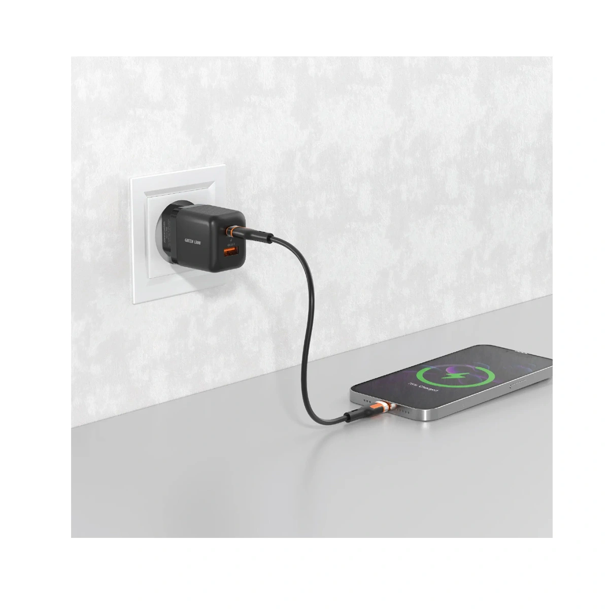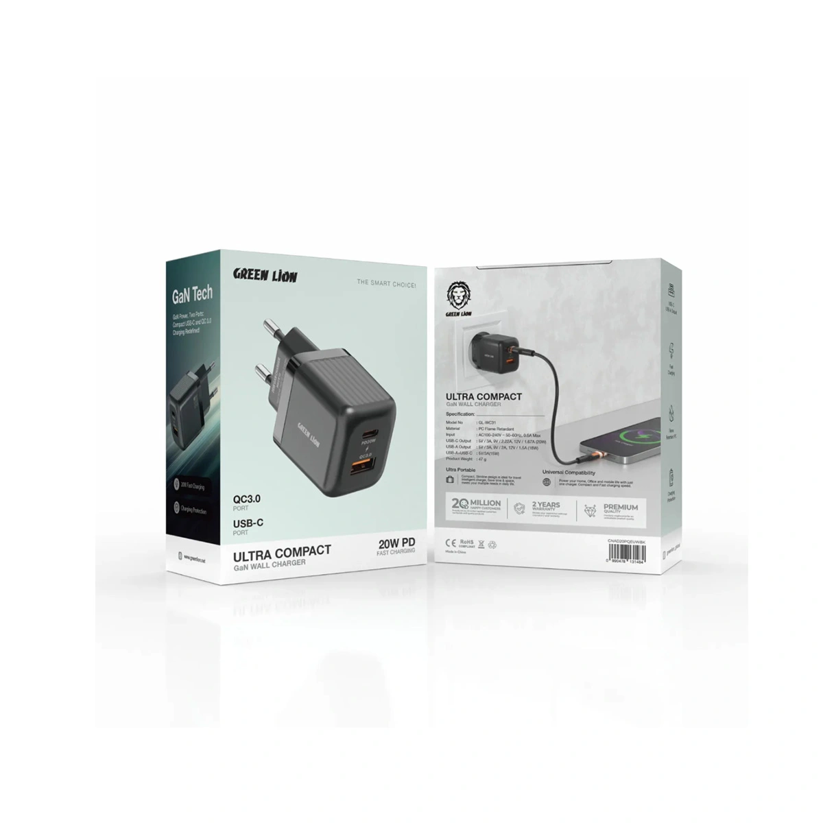 این شارژر دیواری گرین لاین با فناوری GaN و دو پورت قدرتمند (USB-C و USB-A) امکان شارژ سریع را برای انواع دستگاه‌ها از جمله آیفون، آیپد، گوشی‌های اندرویدی و گجت‌های هوشمند فراهم می‌کند. کابل‌های همراه USB-C به USB-C و USB-C به Lightning تمامی نیازهای شارژ شما را پوشش می‌دهند. جنس بدنه ضدحریق، ایمنی شارژر را تضمین کرده و محافظت هوشمند خطرات رایج شارژ را برطرف می‌کند. ابعاد فوق‌العاده کوچک، حمل آسان در سفر و کاربرد روزانه را ممکن ساخته است.