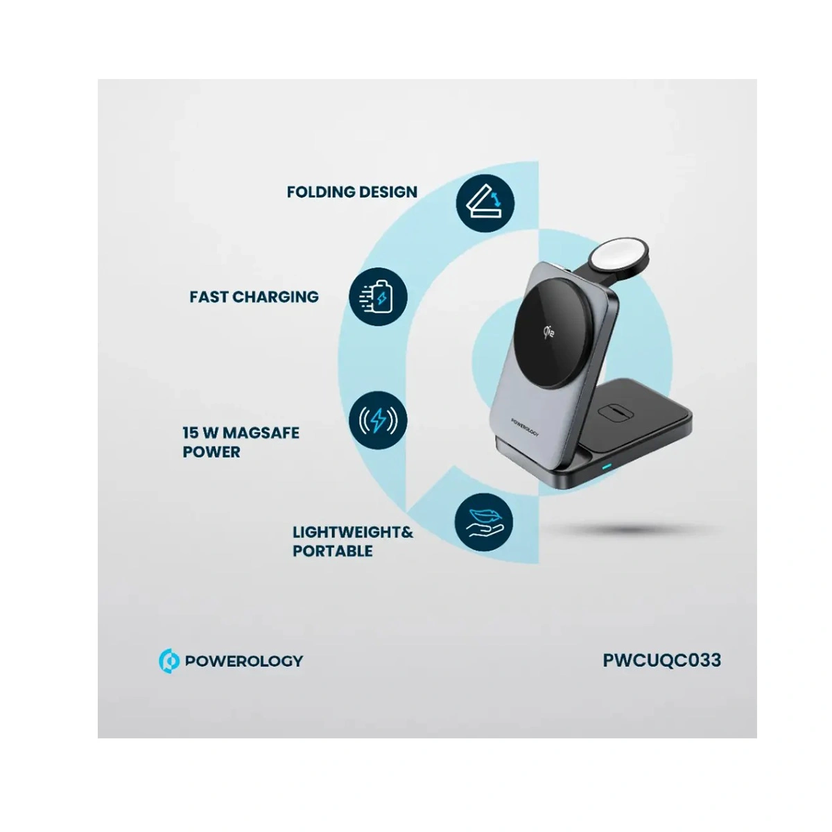 برخلاف استندهای شارژ ثابت و جاگیر، Powerology Qi2 Hub دارای طراحی تاشو (Foldable Design) است. شما میتوانید آن را کاملاً تخت کنید تا به راحتی در کیف یا جیب جا شود، یا آن را باز کرده و به عنوان یک استند برای تماشای فیلم یا تماس تصویری (در حالت عمودی یا افقی) استفاده کنید. این ویژگی برای کسانی که زیاد سفر میکنند یا فضای میز محدودی دارند، بسیار ارزشمند است.