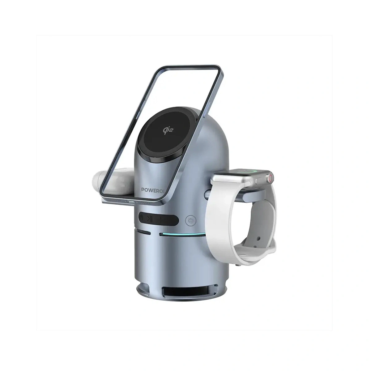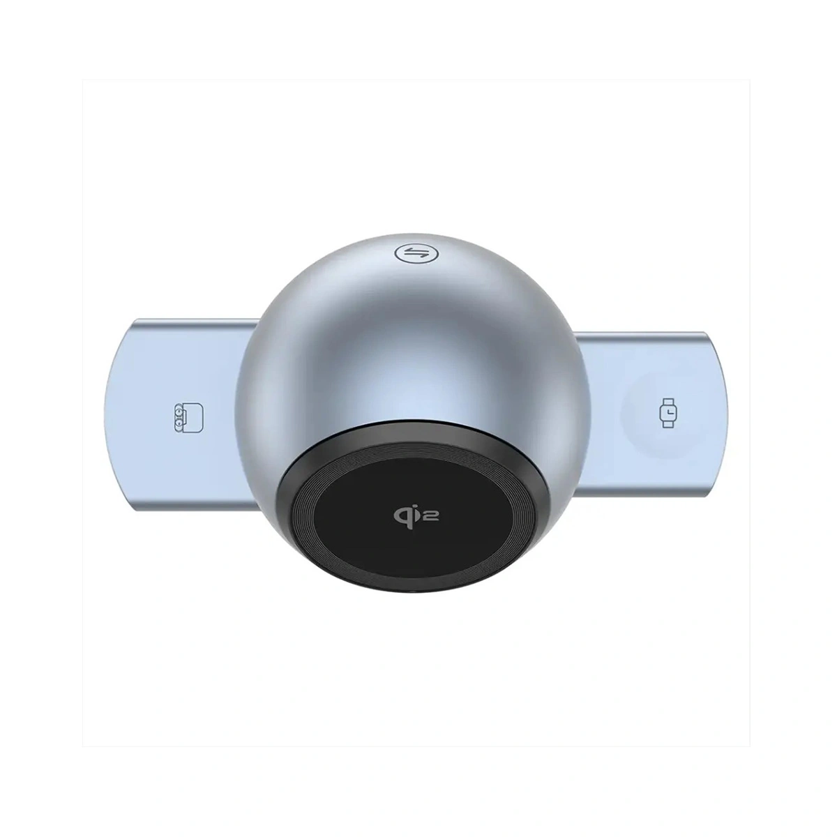 با بهرهگیری از استاندارد جدید Qi2، این استند گوشی آیفون شما را با سرعت و دقت مگسیف (تا ۱۵ وات) شارژ میکند. پد شارژ اصلی قابلیت چرخش دارد و یک پایه مخفی (Pop-out Dock) برای قرارگیری راحتتر دستگاهها در آن تعبیه شده است. همچنین هولدر موبایل تا ۹۰ درجه میچرخد تا بتوانید بهترین زاویه دید را برای تماشای فیلم یا تماس تصویری تنظیم کنید.