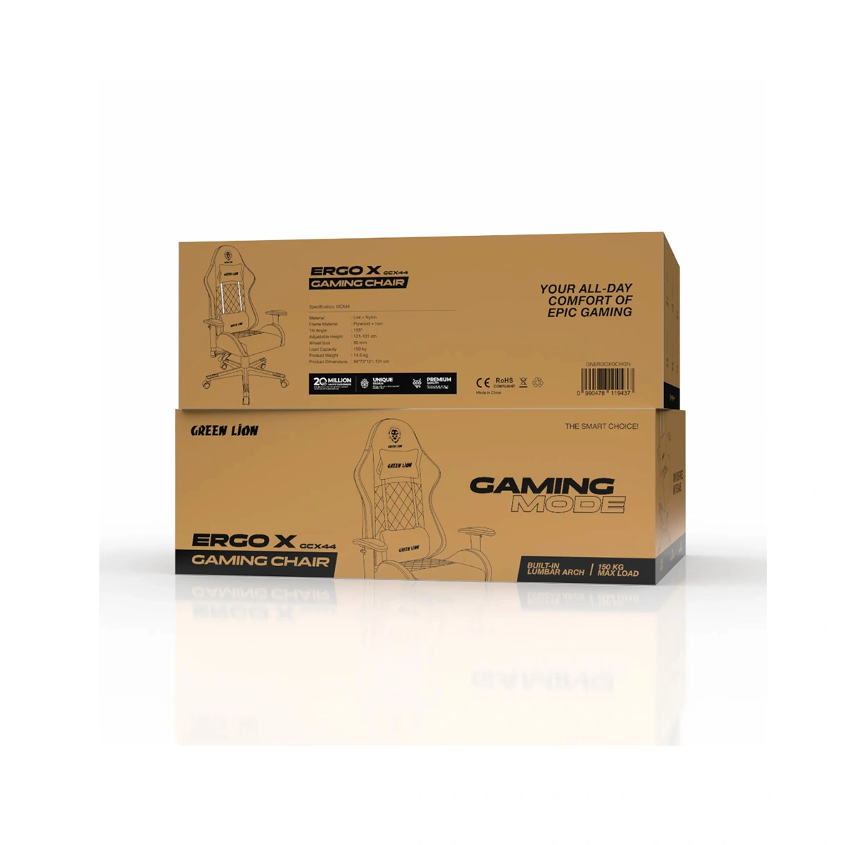صندلی گیمینگ Green Lion ERGO X GCX44 – Green برای کسانی ساخته شده که ساعت‌های طولانی پشت سیستم می‌نشینند؛ چه گیمر باشند، چه طراح، برنامه‌نویس یا کاربر اداری.