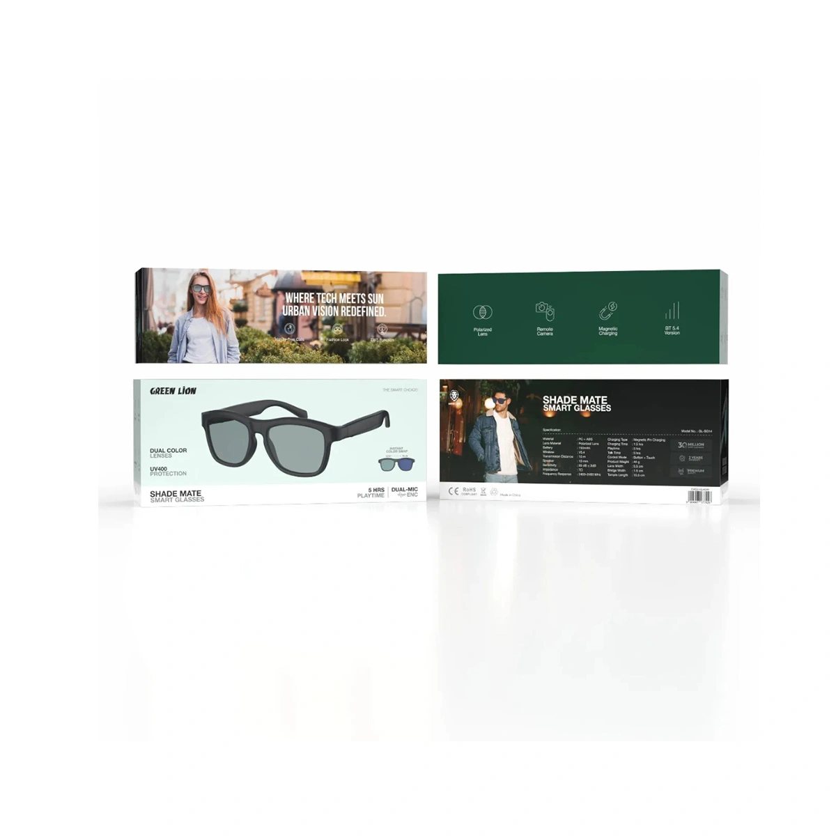 با بهرهگیری از میکروفونهای دوگانه و فناوری ENC (Environmental Noise Cancellation)، این عینک صدای محیط را در حین تماس فیلتر میکند تا مکالمهای شفاف و بدون نویز داشته باشید. بلوتوث نسخه ۵.۴ نیز اتصالی پایدار و کمتاخیر را برای پخش موسیقی و تماسهای هندزفری تضمین میکند.