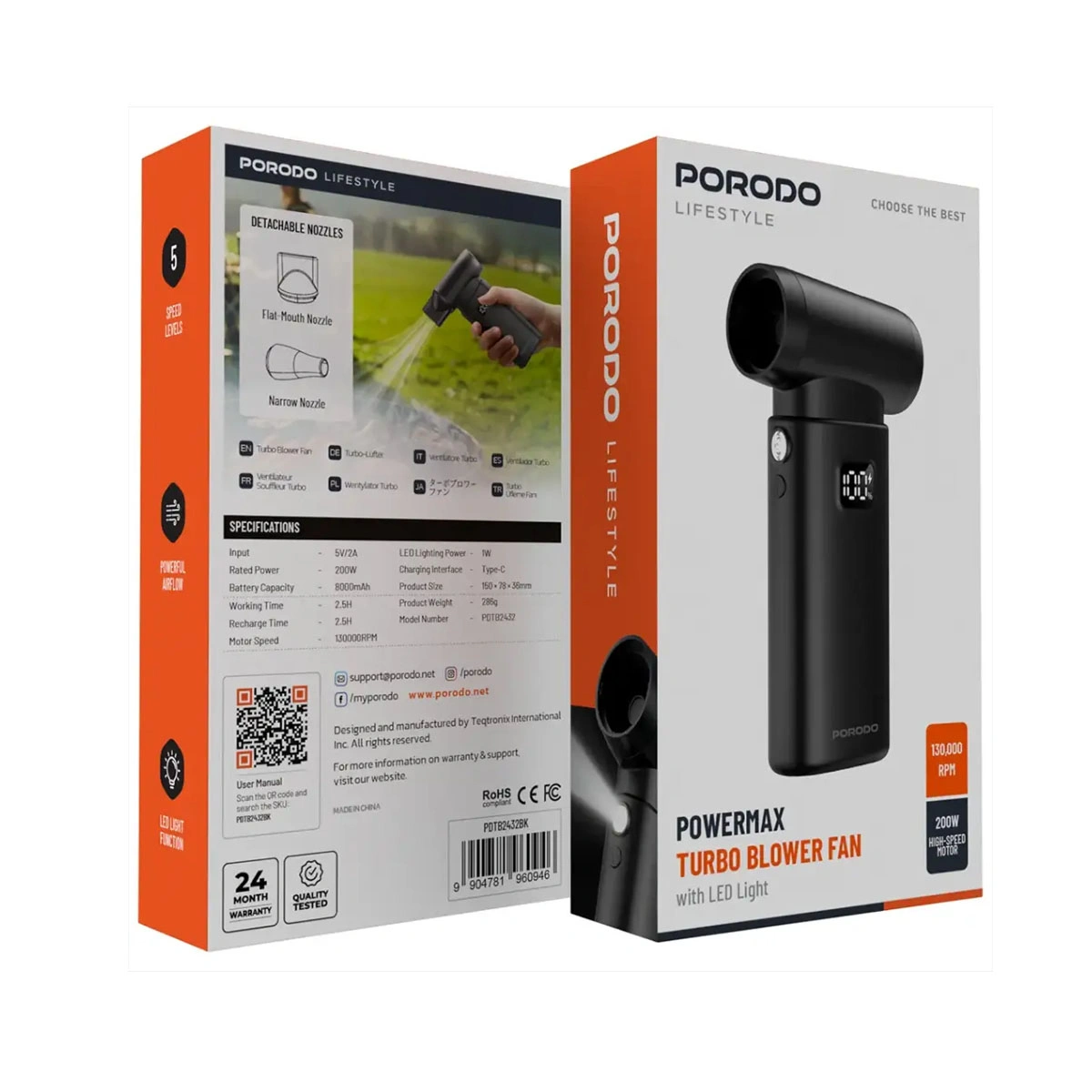 بلوور فن توربوی پرودو مدل PDTB2432BK از سری Lifestyle Powermax برای کاربرانی طراحی شده که به جریان هوای بسیار قوی در ابعادی جمع‌وجور نیاز دارند؛ چه برای تمیزکاری تجهیزات، چه برای بادگیری و حتی خنک‌کردن محیط‌های کوچک. موتور ۲۰۰ واتی این دستگاه با توان رسیدن به سرعت حدود ۱۳۰۰۰۰ دور در دقیقه، هوایی متمرکز و توربویی تولید می‌کند که گرد و غبار و ذرات ریز را از سطوح مختلف جدا می‌کند.​
