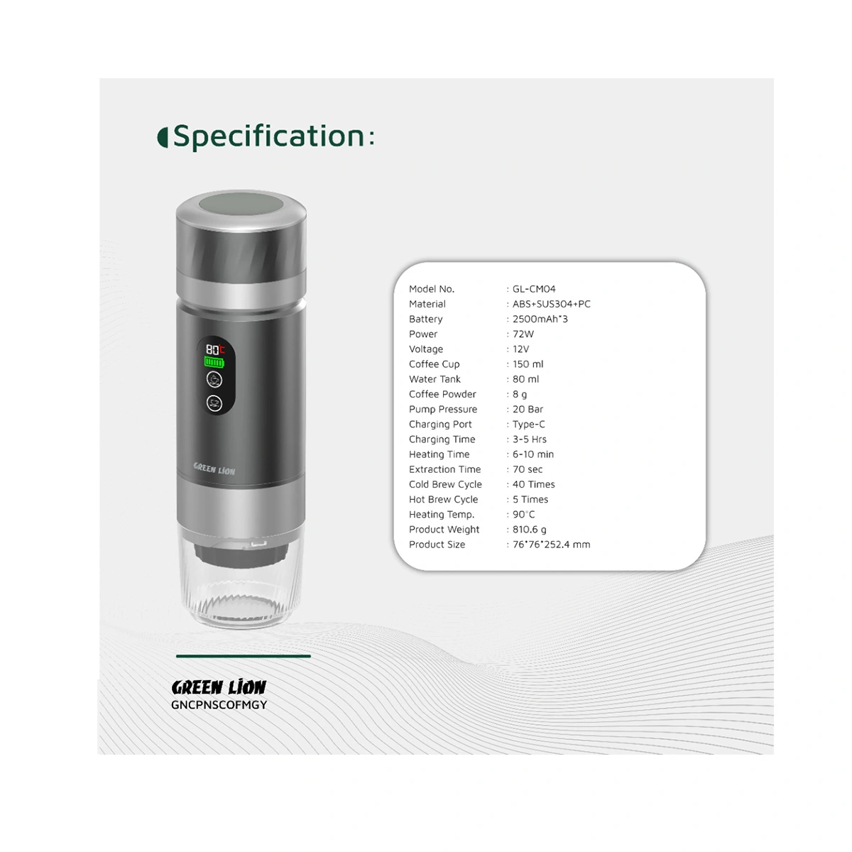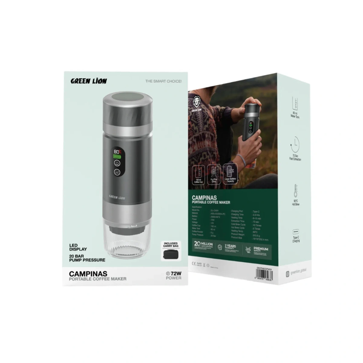قهوهساز قابلحمل Green Lion Campinas Portable Coffee Maker برای کسانی طراحی شده که میخواهند کیفیت اسپرسوی نزدیک به دستگاههای حرفهای را در ابعاد کوچک و قابلحمل همیشه همراه خود داشته باشند. این دستگاه با مخزن آب ۸۰ میلیلیتر و فنجان تقریبی ۱۵۰ میلیلیتری، یک شات اسپرسوی غلیظ و مناسب سرو تکنفره یا دوبل سبک را در اختیار شما قرار میدهد.