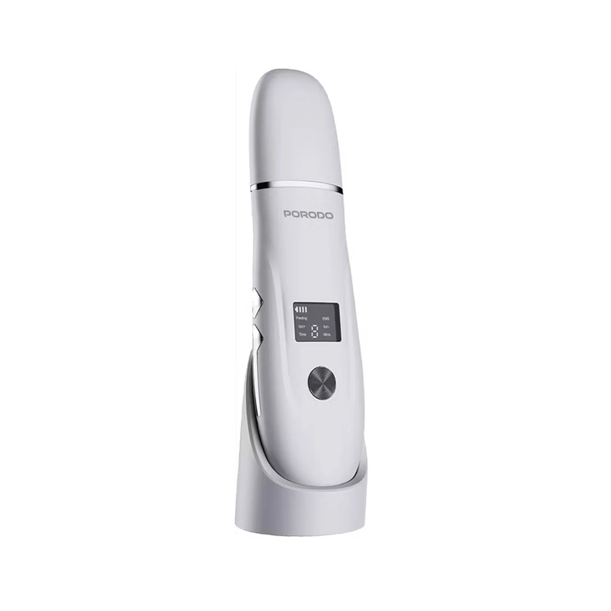 Porodo Lifestyle Ultrasonic Face Scrub & Peeler یک اسکرابر اولتراسونیک است که با لرزش فرکانس بالا روی سطح تیغه، آلودگی، سبوم اکسیدشده و سلولهای مرده را از منافذ و سطح پوست بلند میکند. استفاده روی پوست مرطوب یا همراه تونر/میسلار، کمک میکند امواج اولتراسونیک سریعتر آلودگیها را از لایه رویی پوست جدا کنند و در نتیجه ظاهر منافذ ریزتر و سطح پوست صافتر به نظر برسد، بدون اینکه نیاز به اسکراب دانهای خشن باشد.