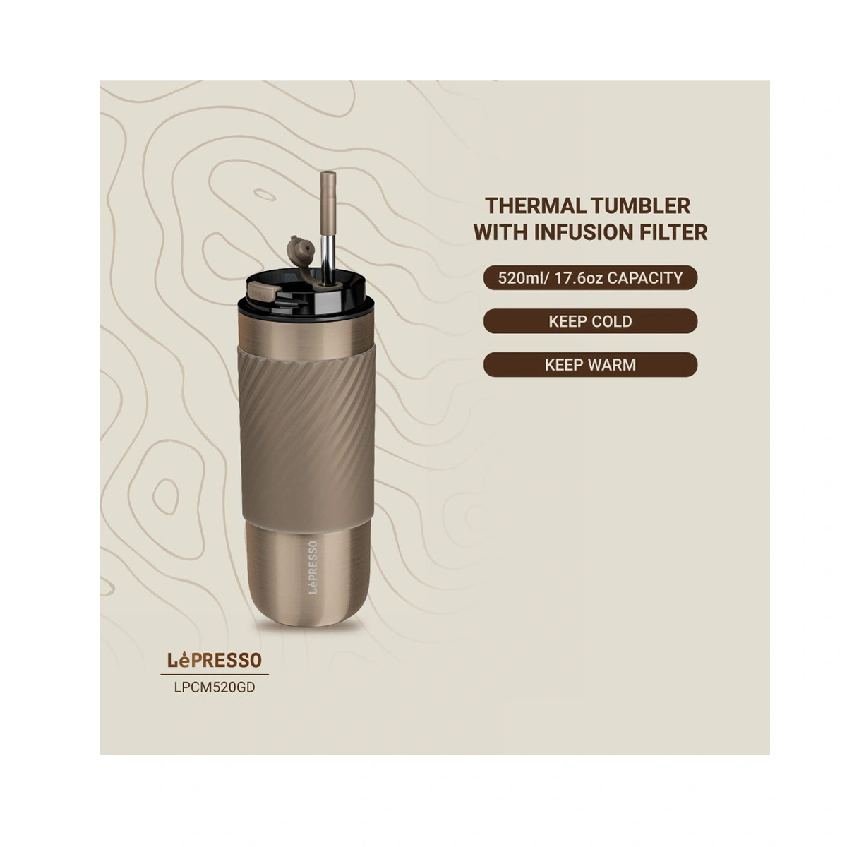 برای مشتریان MTM که در کنار قهوه و کپسول، بهدنبال یک تامبلر باکیفیت برای دمنوش، چای یا آب طعمدار هستند، LePresso Thermal Tumbler With Infusion Filter یک پیشنهاد کامل است؛ هم از نظر کیفیت متریال و عایقبودن، و هم از نظر انعطاف در نوع نوشیدنی که میتوان با آن همراه داشت.