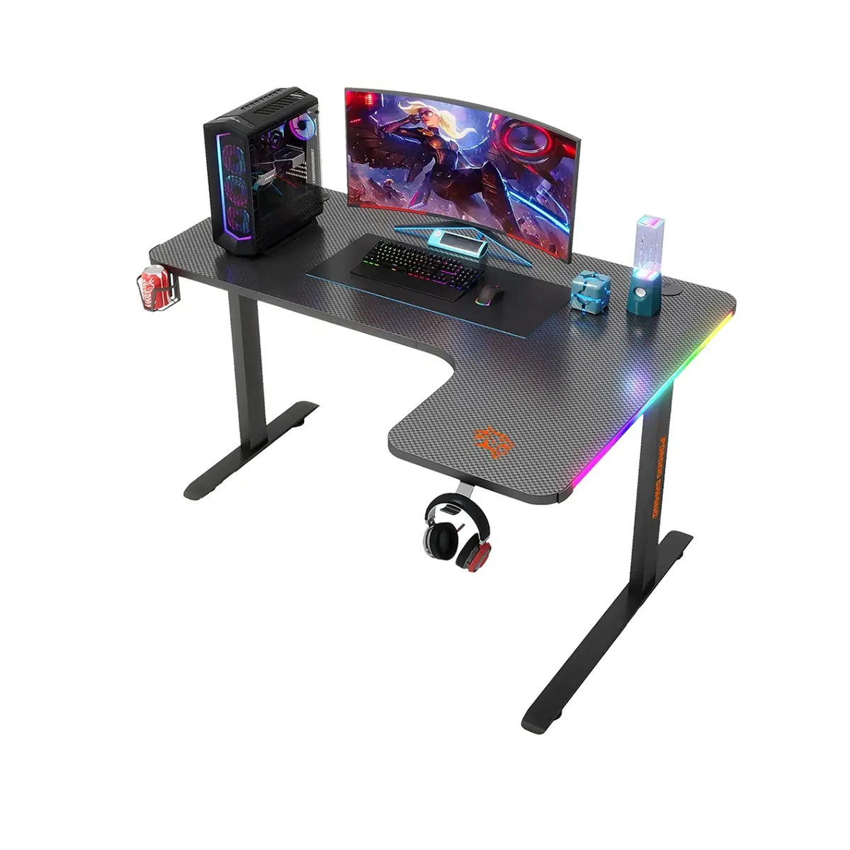 این میز با روکش فیبر کربن باکیفیت نهتنها ظاهری فوقالعاده جذاب دارد، بلکه در برابر خط و خش و استفاده طولانیمدت نیز مقاومت بالایی از خود نشان میدهد. نورپردازی RGB تعبیهشده در بدنه، جلوهای هیجانانگیز و حرفهای به فضای گیمینگ شما میبخشد و کاملاً با حالوهوای بازی و استریم هماهنگ است.