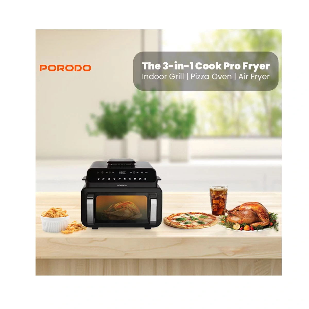 ستگاه چندکاره Porodo Lifestyle Flexi Cook Pro با قابلیت گریل داخلی، فر پیتزا و سرخکن بدون روغن، توان بالا، طراحی مدرن و کنترل دیجیتال، انتخابی کامل برای آشپزخانههای حرفهای و خانگی است.Porodo Lifestyle Flexi Cook Pro یک دستگاه چندکاره و قدرتمند است که سه عملکرد اصلی را در یک محصول ترکیب میکند: گریل داخلی، فر پیتزا و سرخکن بدون روغن. این طراحی هوشمند به شما امکان میدهد انواع غذاها را با یک دستگاه آماده کنید، بدون نیاز به چند وسیله جداگانه.