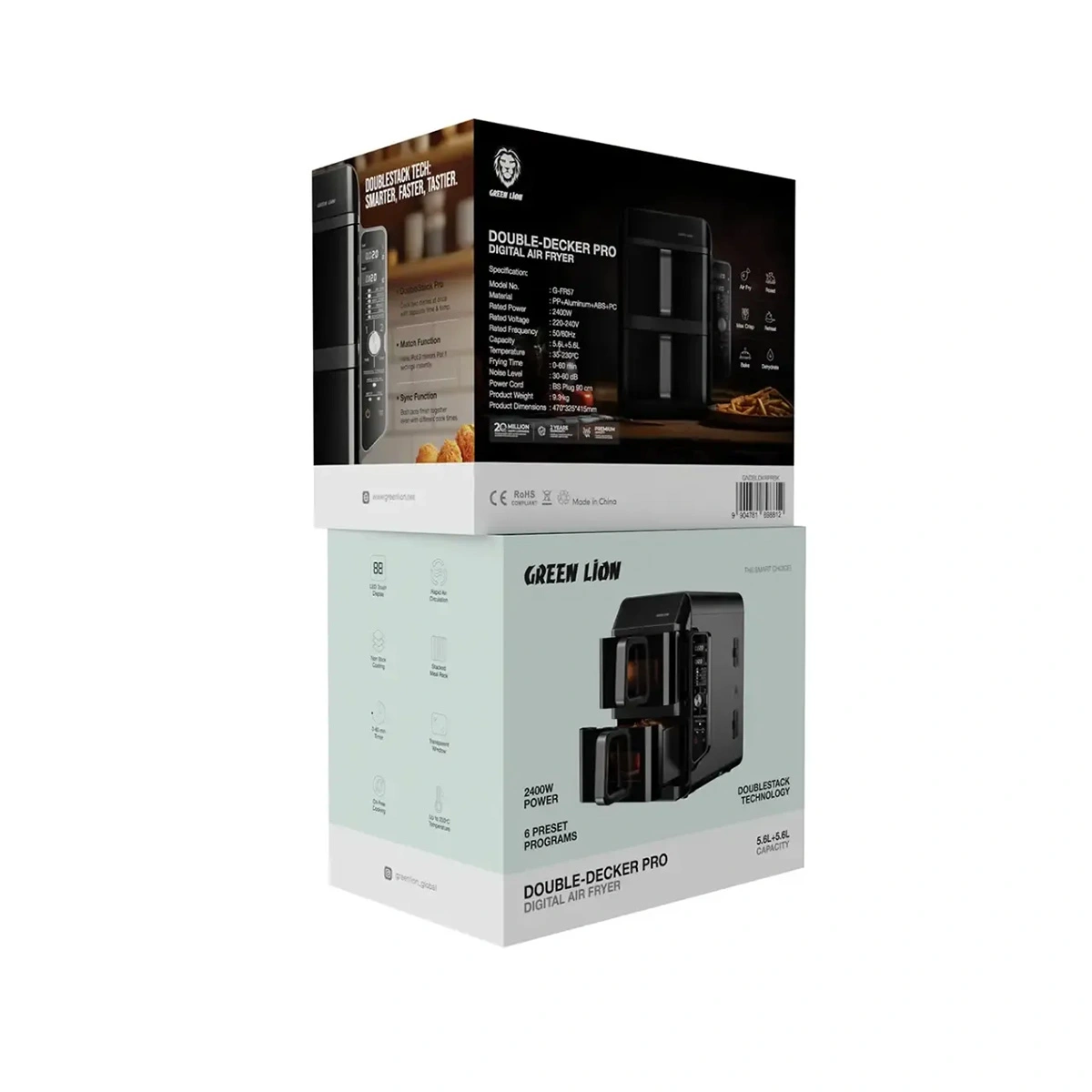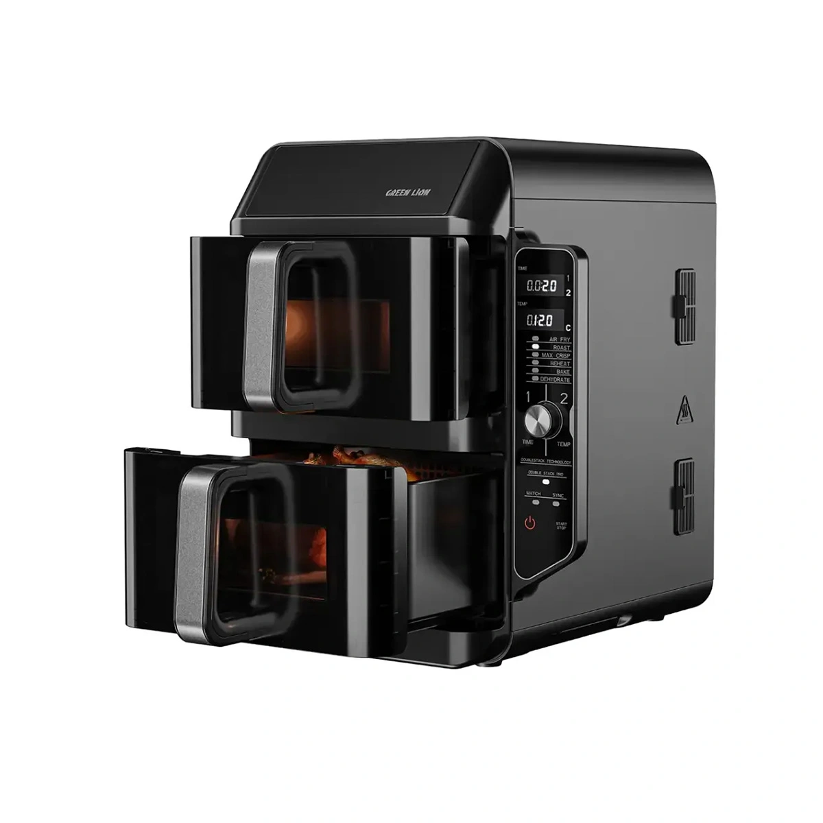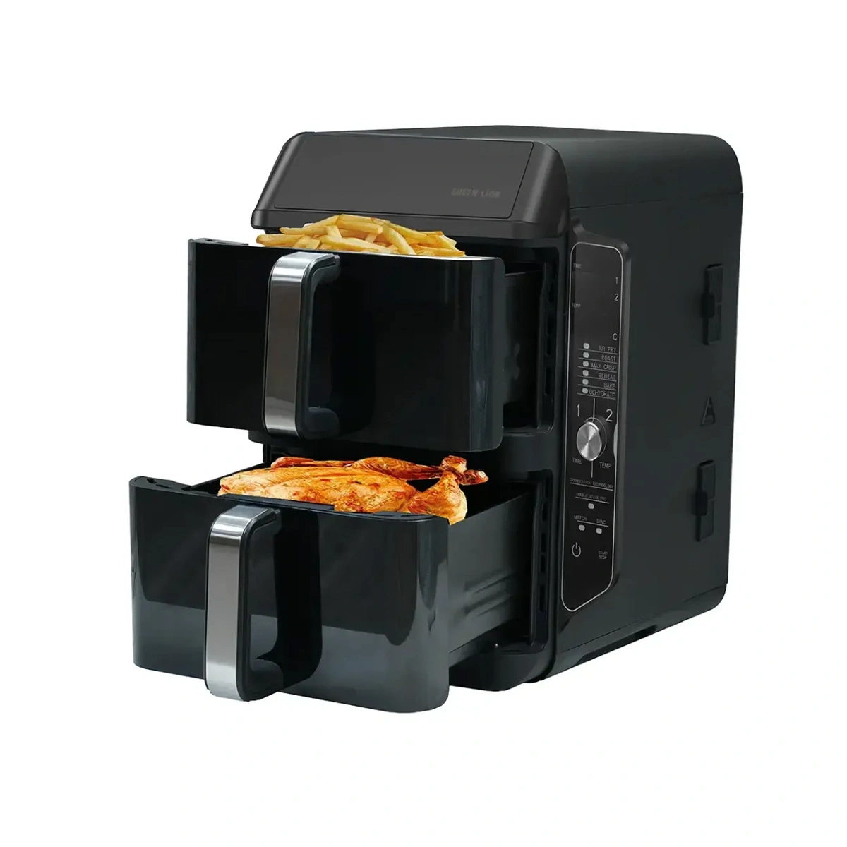 سرخکن بدون روغن گرین لاین Double‑Decker Pro Digital Air Fryer با طراحی دو محفظهای، برای کسانی ساخته شده که میخواهند در یک وعده، چند غذا را همزمان و با روغن بسیار کم آماده کنند.