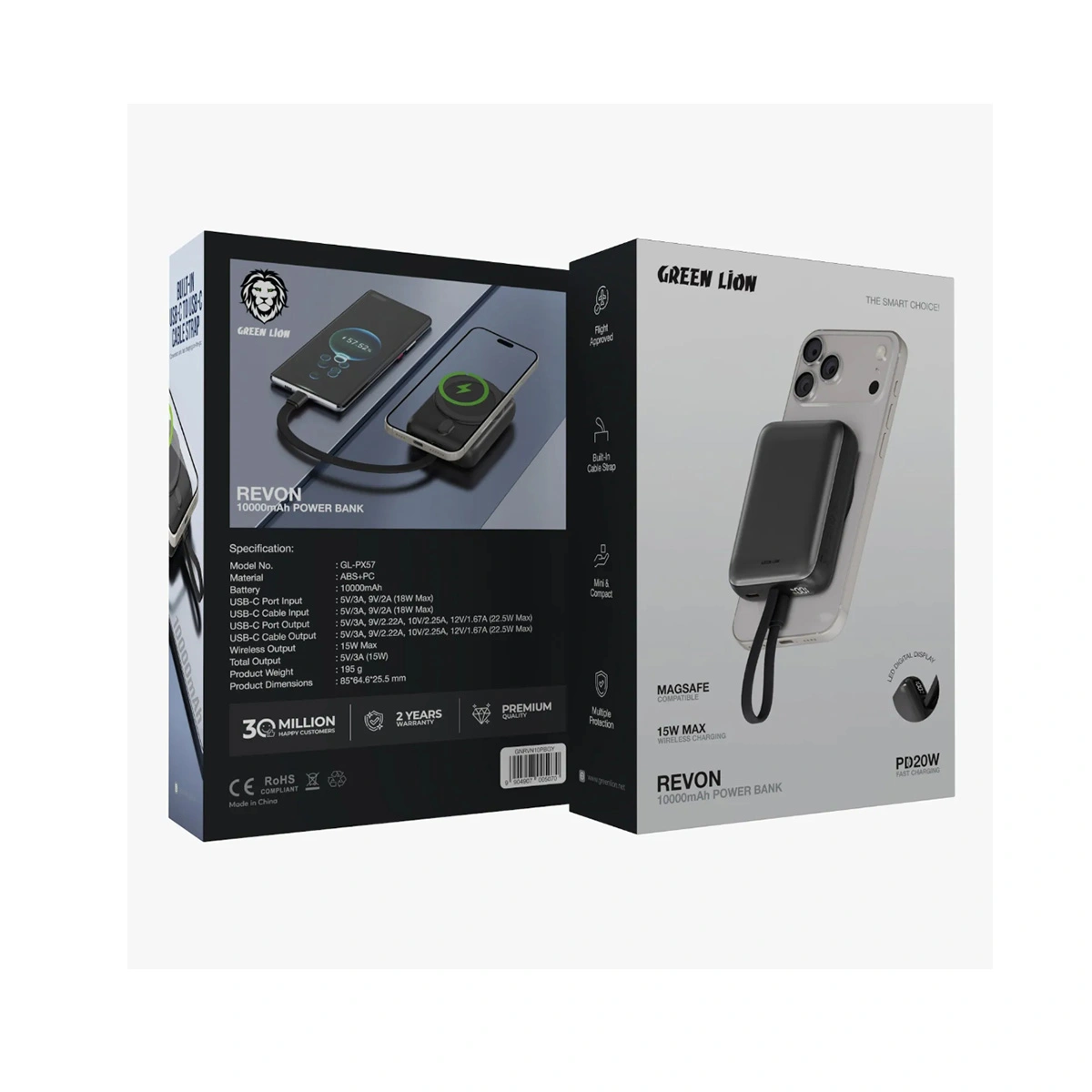 پاوربانک Green Lion Revon با ظرفیت 10000 میلیآمپر ساعت، ترکیبی از طراحی مدرن و کارایی بالاست. این محصول برای کسانی طراحی شده که به دنبال یک پاوربانک سبک، خوشدست و قدرتمند هستند تا در طول روز نگران تمام شدن شارژ گوشی یا گجتهای خود نباشند. بدنه این پاوربانک از جنس پلاستیک فشرده و مقاوم (ABS + PC) ساخته شده که در برابر ضربه و حرارت مقاومت خوبی از خود نشان میدهد.