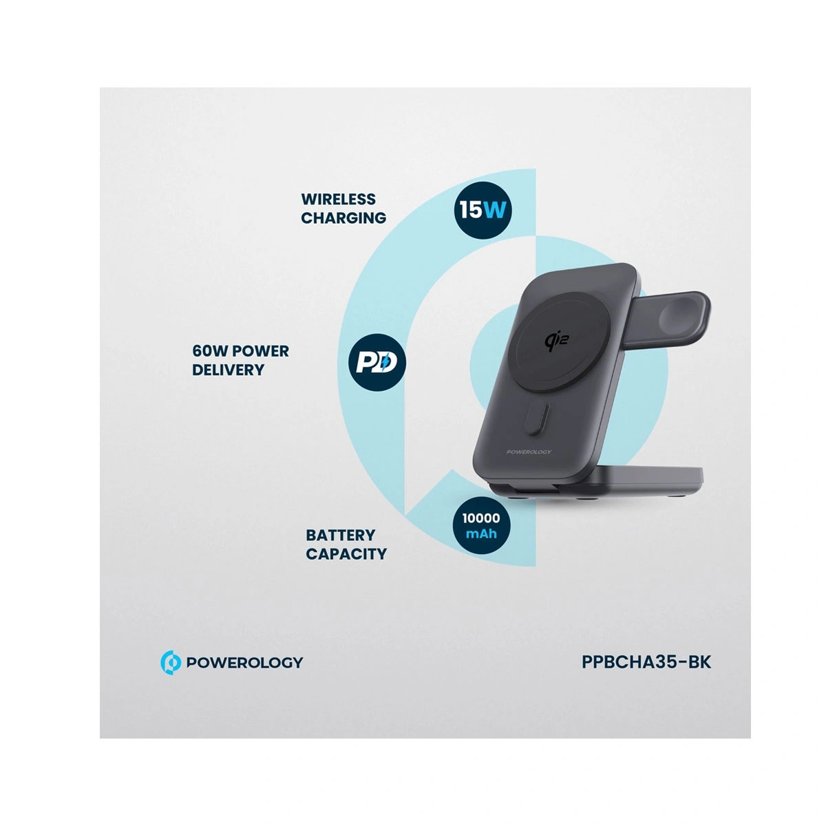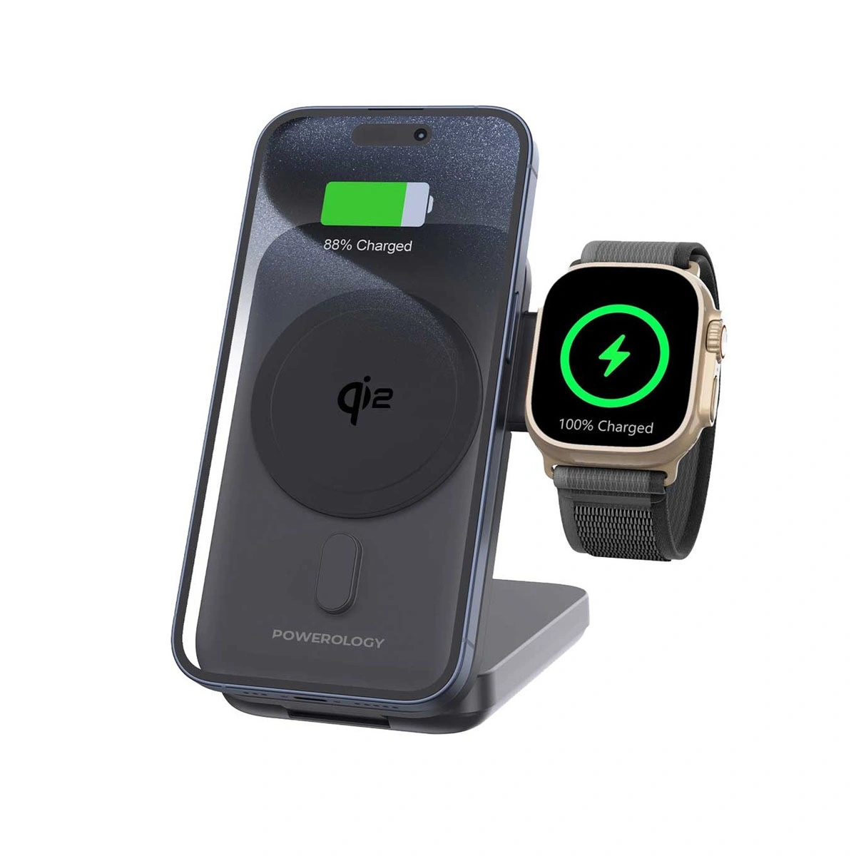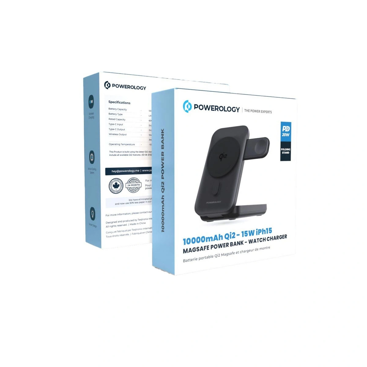 پاوربانک مگ‌سیف ۱۰۰۰۰ میلی‌آمپر پاورولوژی مدل Qi2 با توان ۱۵ وات و استند تاشو