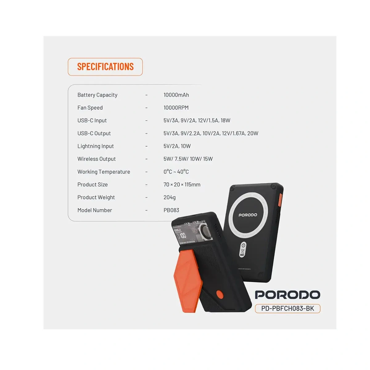پاوربانک Porodo 10000mAh MagSafe Power Bank یک شارژر قابل حمل پیشرفته با ظرفیت بالا و طراحی مدرن است. این محصول با فناوری MagSafe عرضه شده و گوشیهای آیفون سازگار را به صورت مغناطیسی شارژ میکند. ظرفیت ۱۰,۰۰۰ میلیآمپر ساعت آن برای شارژ چندین بار گوشیهای هوشمند کافی است و همراهی مطمئن برای سفر، محل کار و استفاده روزمره محسوب میشود.این پاوربانک برای کسانی طراحی شده که به دنبال ترکیب ظرفیت بالا، شارژ سریع و طراحی شیک هستند. فناوری MagSafe باعث میشود گوشیهای آیفون سری ۱۲ به بعد به صورت مغناطیسی روی پاوربانک قرار گیرند و بدون نیاز به کابل شارژ شوند. اتصال مغناطیسی قوی، گوشی را محکم نگه میدارد و از قطع شدن شارژ در حین استفاده جلوگیری میکند.