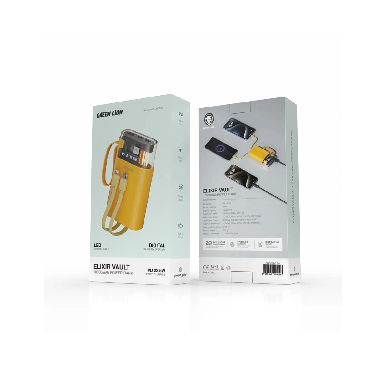 پاوربانک گرین لاین Elixir Vault 10000mAh PD 22.5W – Yellow برای کاربرانی طراحی شده که علاوه بر ظرفیت مناسب، طراحی فشرده، کابلهای داخلی و فستشارژ واقعی میخواهند.
