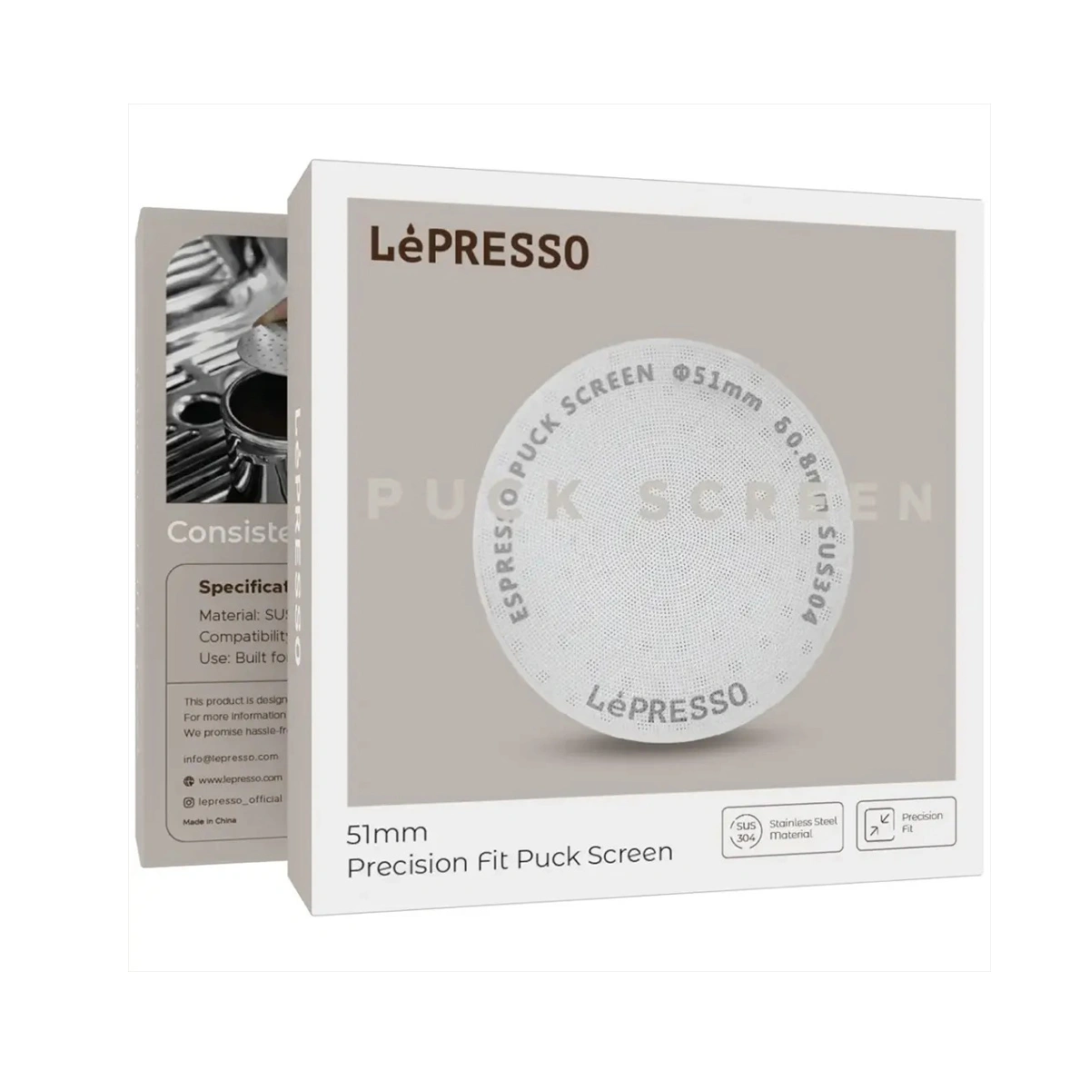 Lepresso 51mm Precision Fit Puck Screen برای باریستاهایی طراحی شده است که می‌خواهند کنترل بیشتری روی جریان آب و تمیزی دستگاه اسپرسو داشته باشند. این صفحه استیل نازک روی سطح پَک قهوه در پرتافیلتر ۵۱ میلی‌متری قرار می‌گیرد و مانند یک دیفیوزر کوچک عمل می‌کند؛ یعنی آب خروجی از دوش گروپ را قبل از برخورد با قهوه پخش می‌کند تا فشار روی سطح به‌صورت یکنواخت‌تری توزیع شود.