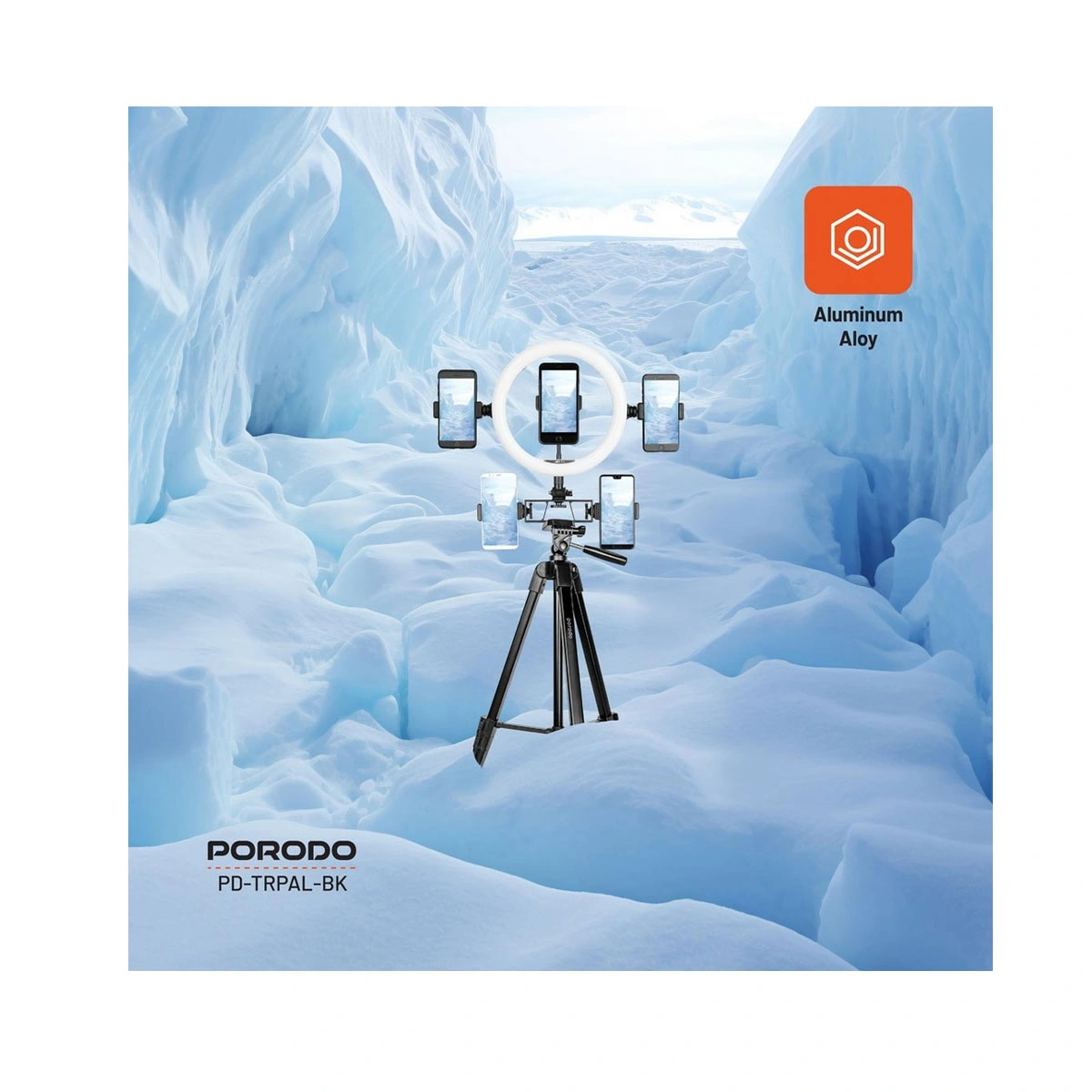 سهپایه Porodo با اکثر دوربینهای DSLR، دوربینهای بدون آینه و حتی گوشیهای هوشمند سازگار است. طراحی حرفهای آن باعث میشود برای پروژههای سینمایی، عکاسی پرتره، ولاگ، استریم زنده و حتی تولید محتوای شبکههای اجتماعی گزینهای عالی باشد. علاوه بر این، ارتفاع قابل تنظیم تا 171 سانتیمتر امکان ثبت تصاویر از زوایای متنوع و پوشش گستردهتر را فراهم میکند.