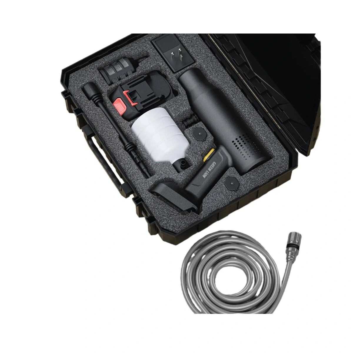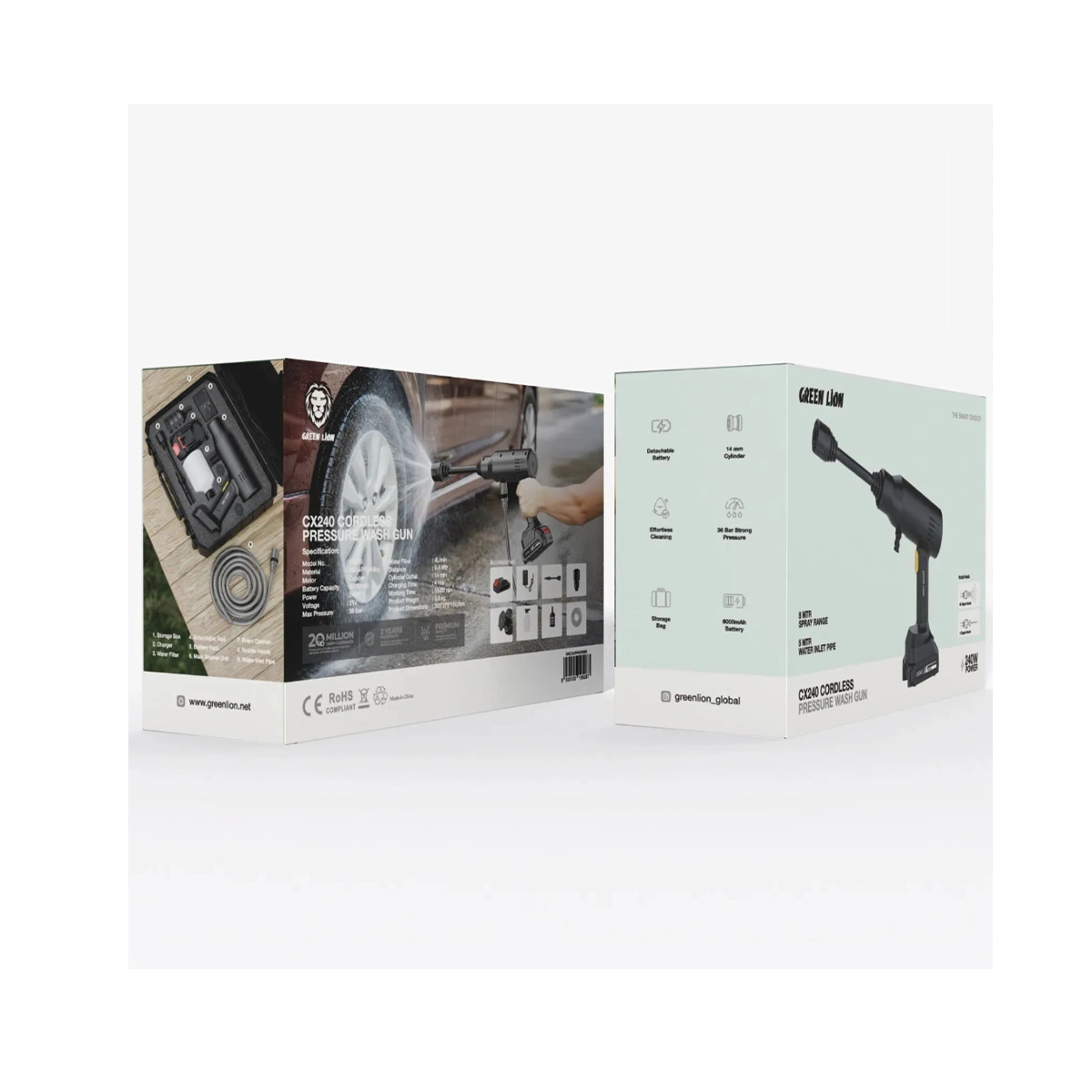 تفنگ کارواش شارژی Green Lion CX240 با طراحی تفنگی و ابعاد جمع‌وجور، به‌راحتی در دست قرار می‌گیرد و برای استفاده طولانی‌مدت خسته‌کننده نیست. به‌دلیل ساختار بدون سیم و باتری داخلی، برای افرادی که دسترسی دائمی به برق شهری ندارند یا می‌خواهند در پارکینگ، باغ یا فضای باز شست‌وشو انجام دهند، بسیار مناسب است. بدنه از ترکیب ABS، PP و آلیاژ فلزی ساخته شده تا علاوه بر وزن مناسب، در برابر ضربه و استفاده روزمره مقاومت خوبی داشته باشد.