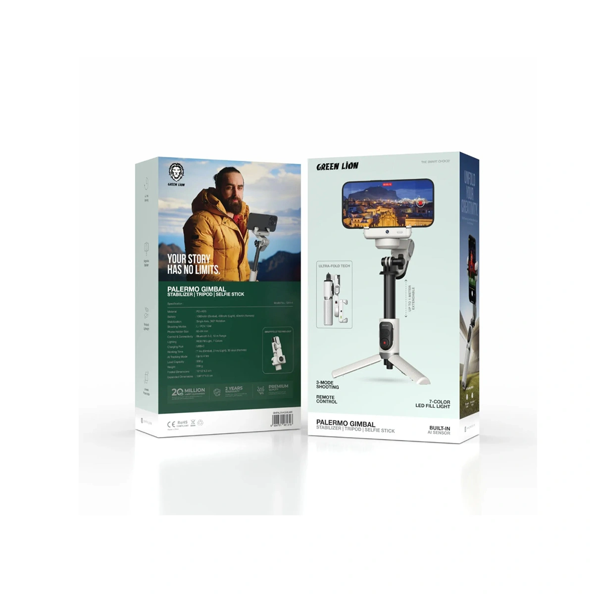 Green Lion Palermo فراتر از یک سلفیاستیک معمولی است؛ موتور تکمحوره (Single Axis Stabilizer) آن لرزشهای دست را هنگام حرکت خنثی میکند تا ویدیوهایی روان و سینمایی ضبط کنید. قابلیت چرخش ۳۶۰ درجه به شما اجازه میدهد تنها با یک دکمه، گوشی را بین حالت عمودی (پرتره) و افقی (لنداسکیپ) بچرخانید.